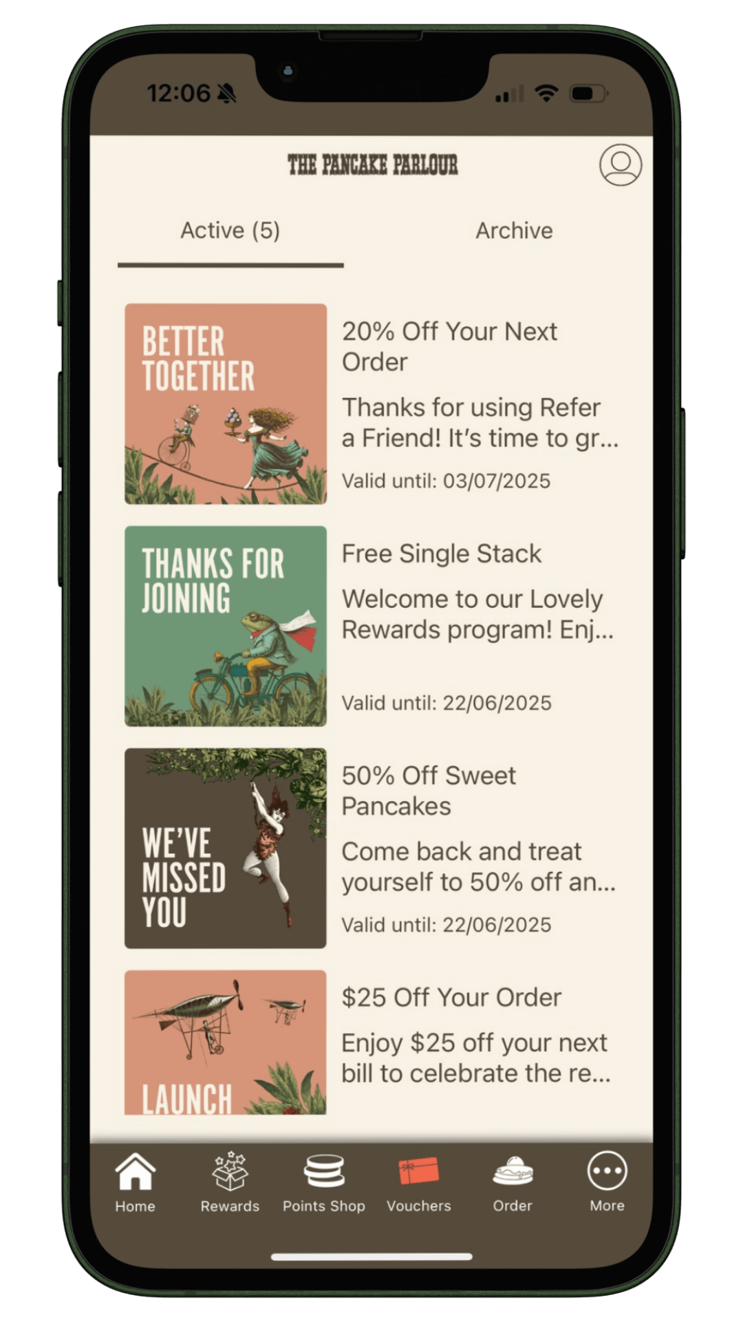 Convert your pancake points into parlour freebies! Visit our points shop to browse choices. -